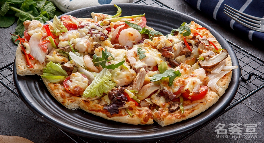 配料則包含了各類肉、蔬菜、水果、菌菇等,果蔬類食材需要講究新鮮可口,而肉制品類,則很講究其口味口感,是除了披薩醬之外的重要口味來源。